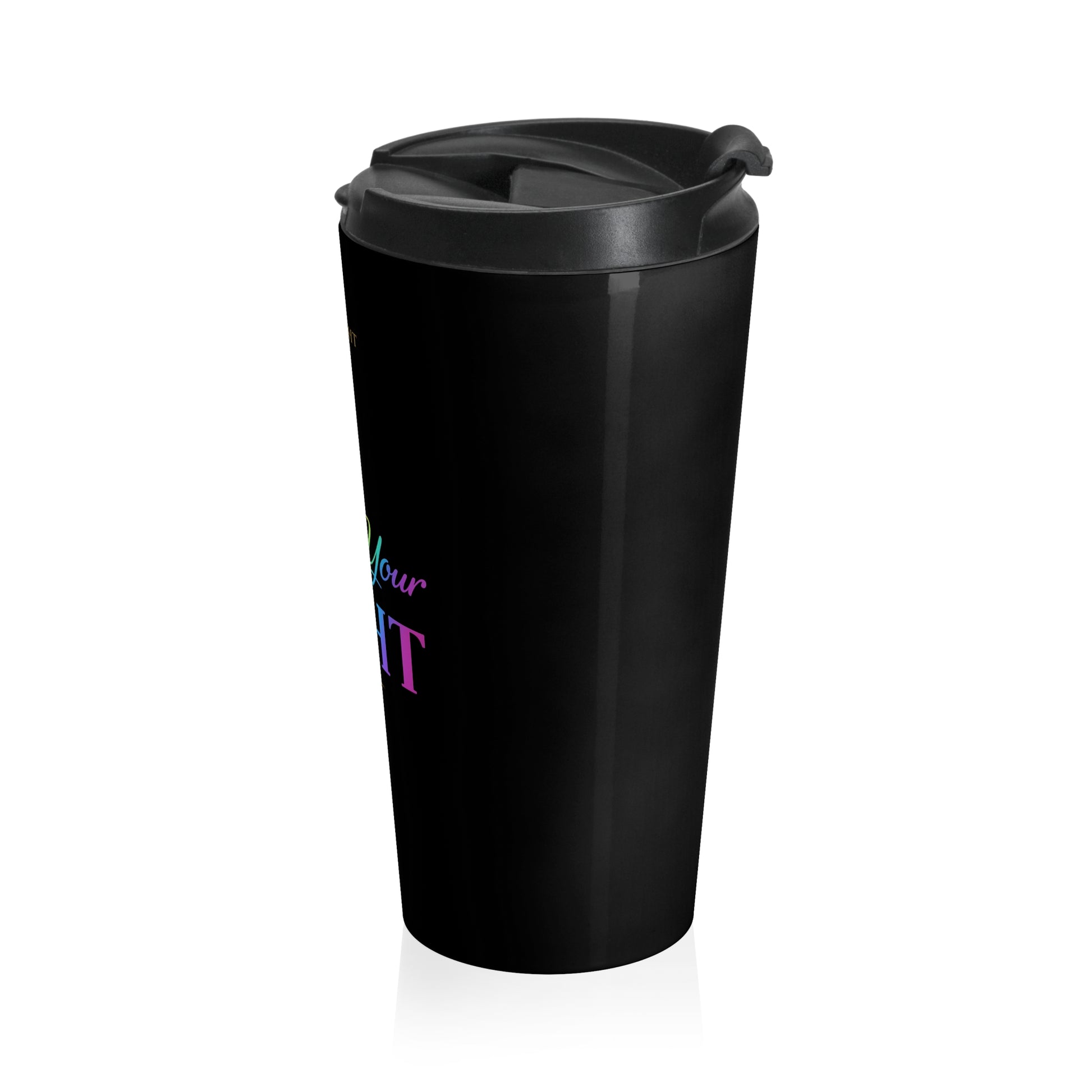 Sip your morning warmth with a travel mug that feels like a quiet, confident companion. The sleek black stainless steel body holds 15 oz of your favorite brew and keeps it ready as you move through early rituals — commute, studio time, or a meditative pause. A luminous, rainbow-accented design catches light and lifts the spirit without shouting; subtle rounded corners and a secure flip-top lid make it easy to carry and comfortable to hold. Built for everyday life, it stands up to spills, dishwasher cycles, and daily wear while the BPA-free lid keeps your drink worry-free. This mug fits into routines that value intention, resilience, and a little bright energy in the day.