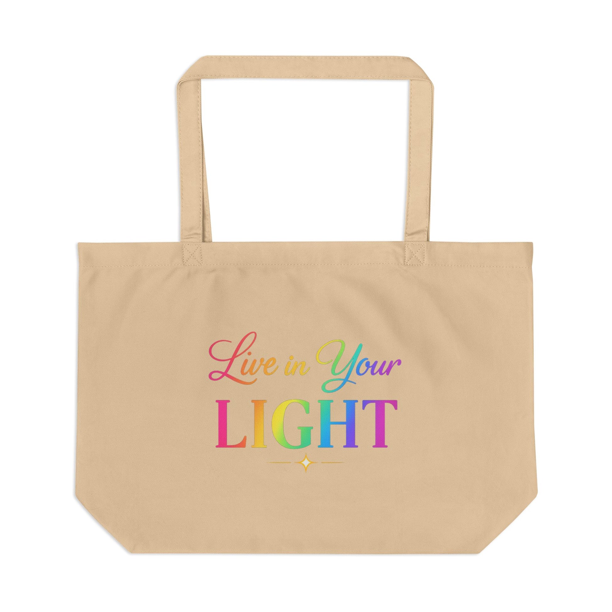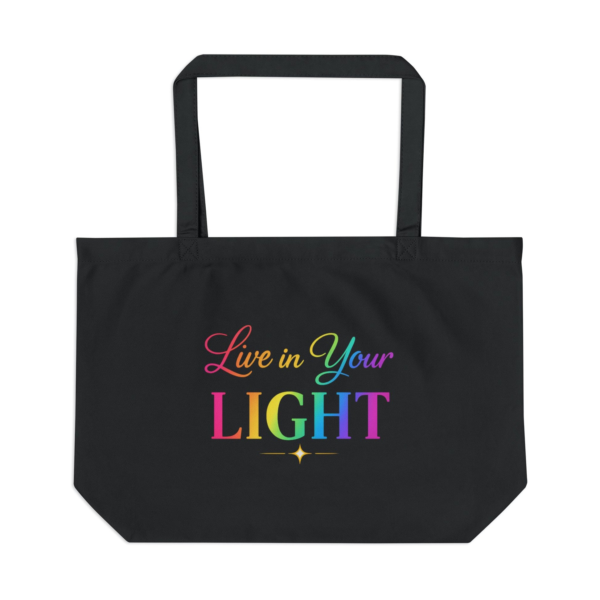 Large Eco Tote — ‘Live in Your Light’ Rainbow Spiritual Canvas Bag