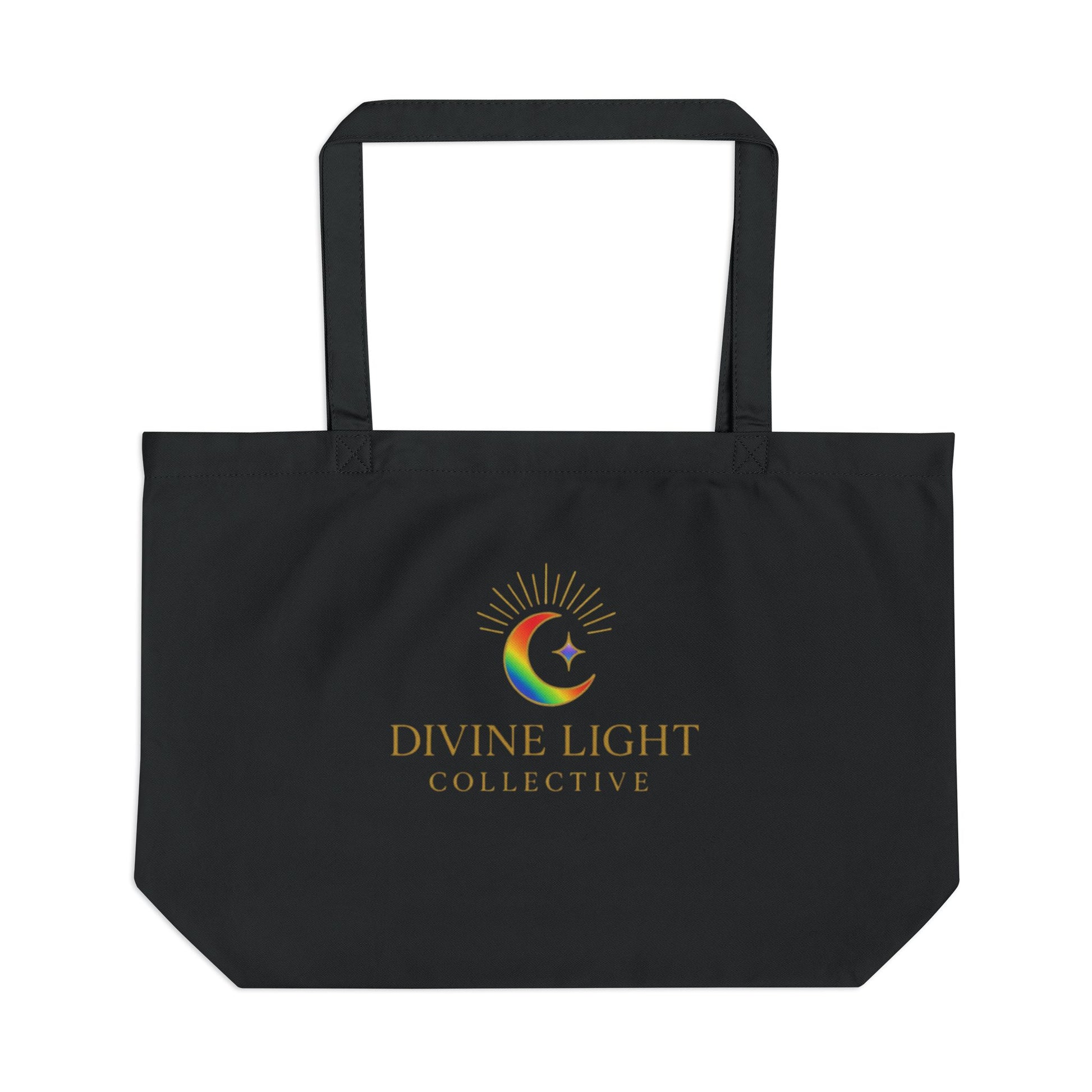 Carry clarity and conscience with this roomy organic cotton tote. The soft natural twill and flat-bottom silhouette hold a week’s worth of groceries, a yoga mat, or morning market finds without sagging. One side shows a subtle ‘Divine Light Collective’ emblem—muted sun rays and a crescent moon in warm, earthy tones—while the reverse greets the day with a joyful, rainbow-printed “Live in Your LIGHT.” It’s lightweight but sturdy, with long self-fabric straps that sit comfortably on shoulder or arm and a 30 lb weight limit for everyday hauling. Certifications like OCS, GRS and OEKO-TEX mean the fiber and finish are made with verified organic and low-impact processes, and the PETA-approved vegan label keeps this tote aligned with ethical wardrobes. This bag lives at the intersection of practicality and mindful style: easy to toss in for errands, to bring to markets, or to pack for a mindful weekend away.
