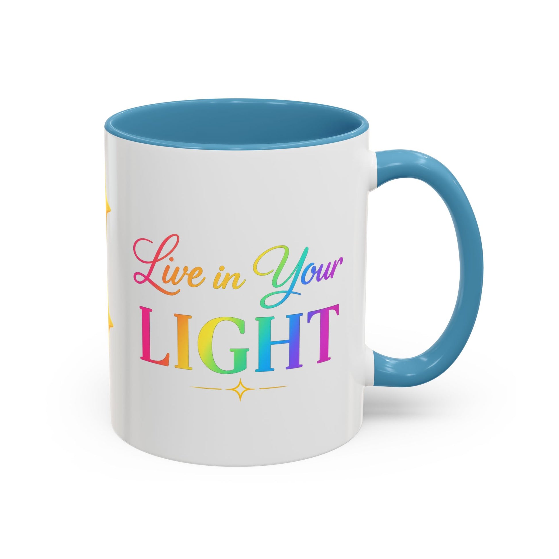Live in Your Light Accent Coffee Mug — Rainbow Inspirational 11/15oz
