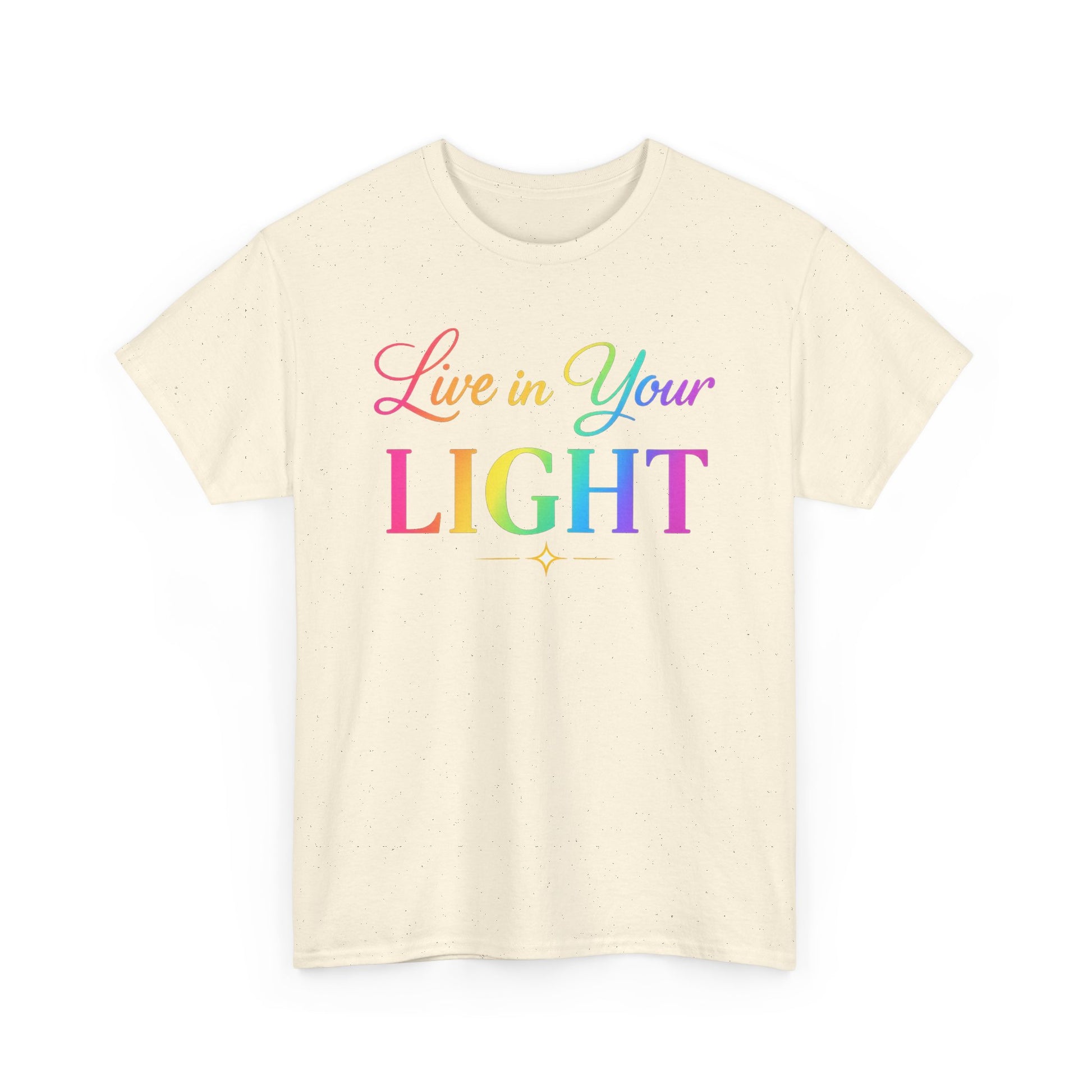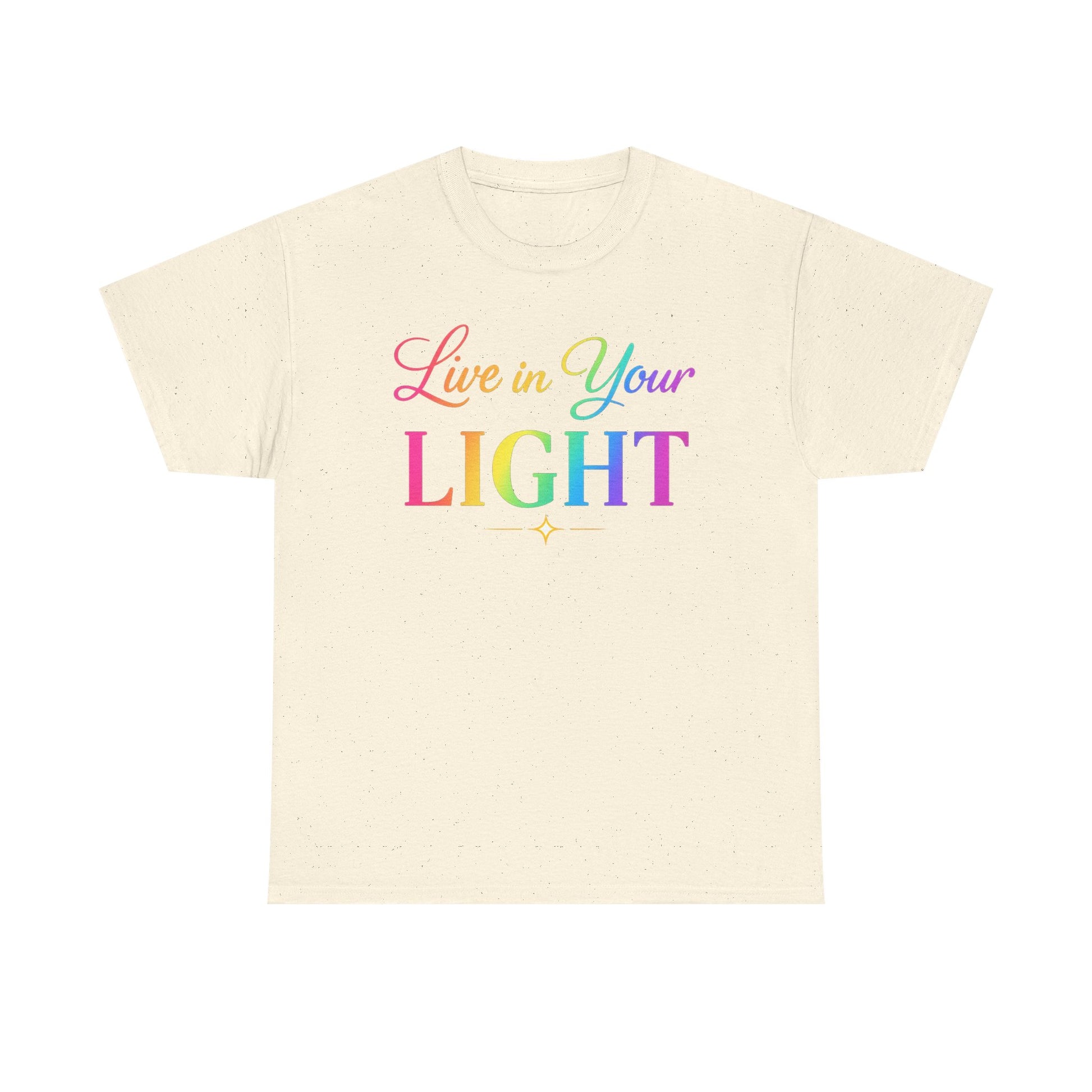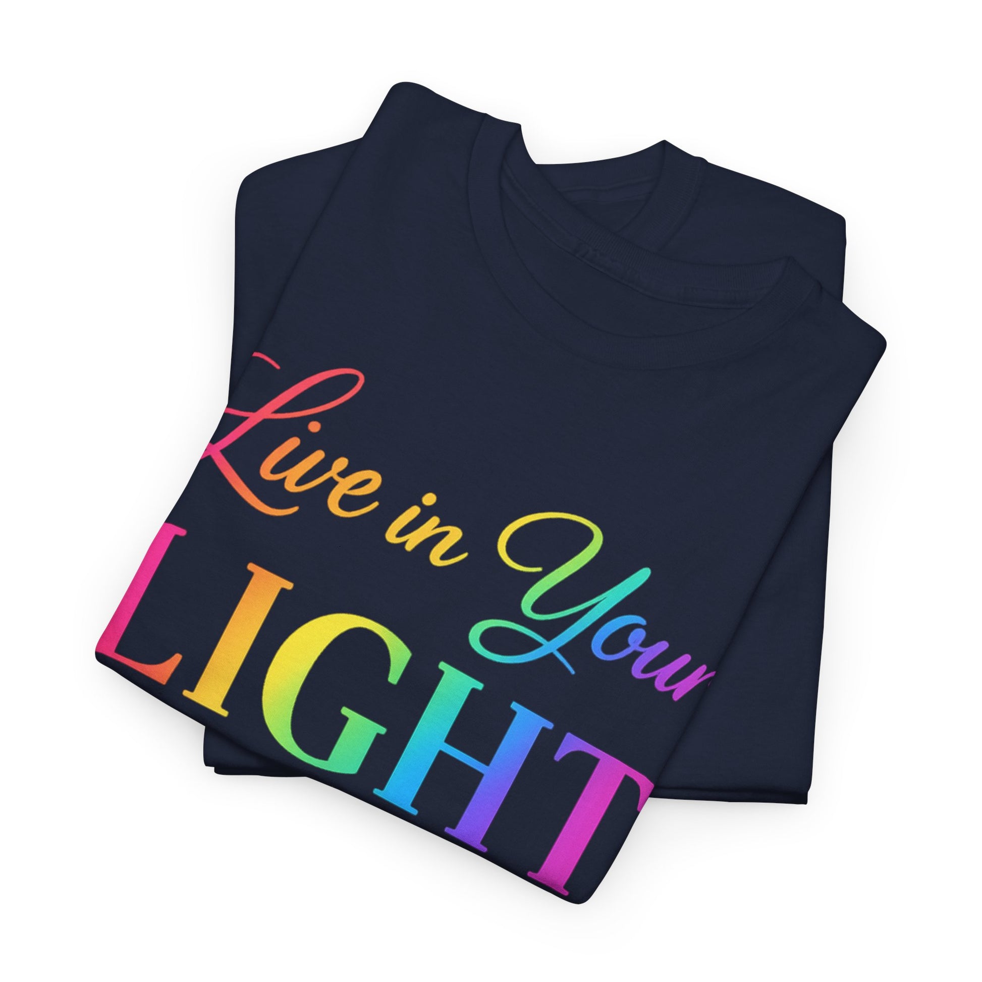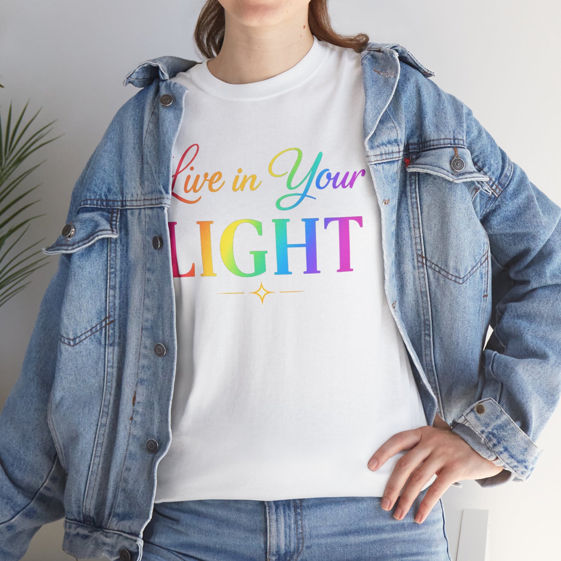 Live in Your Light Rainbow T‑Shirt — Inspirational Positive Message Tee