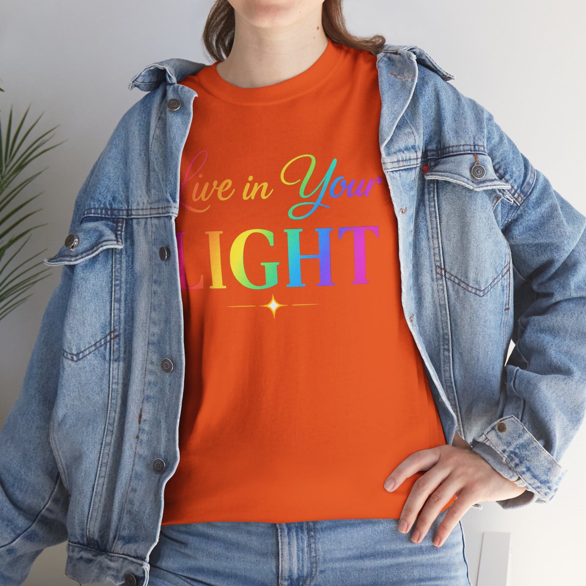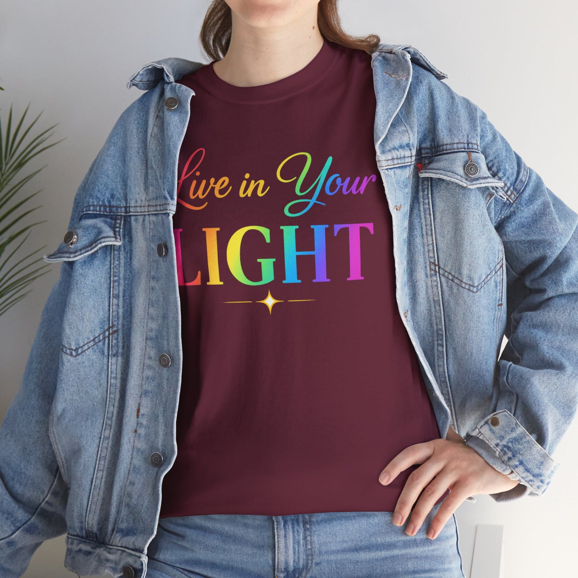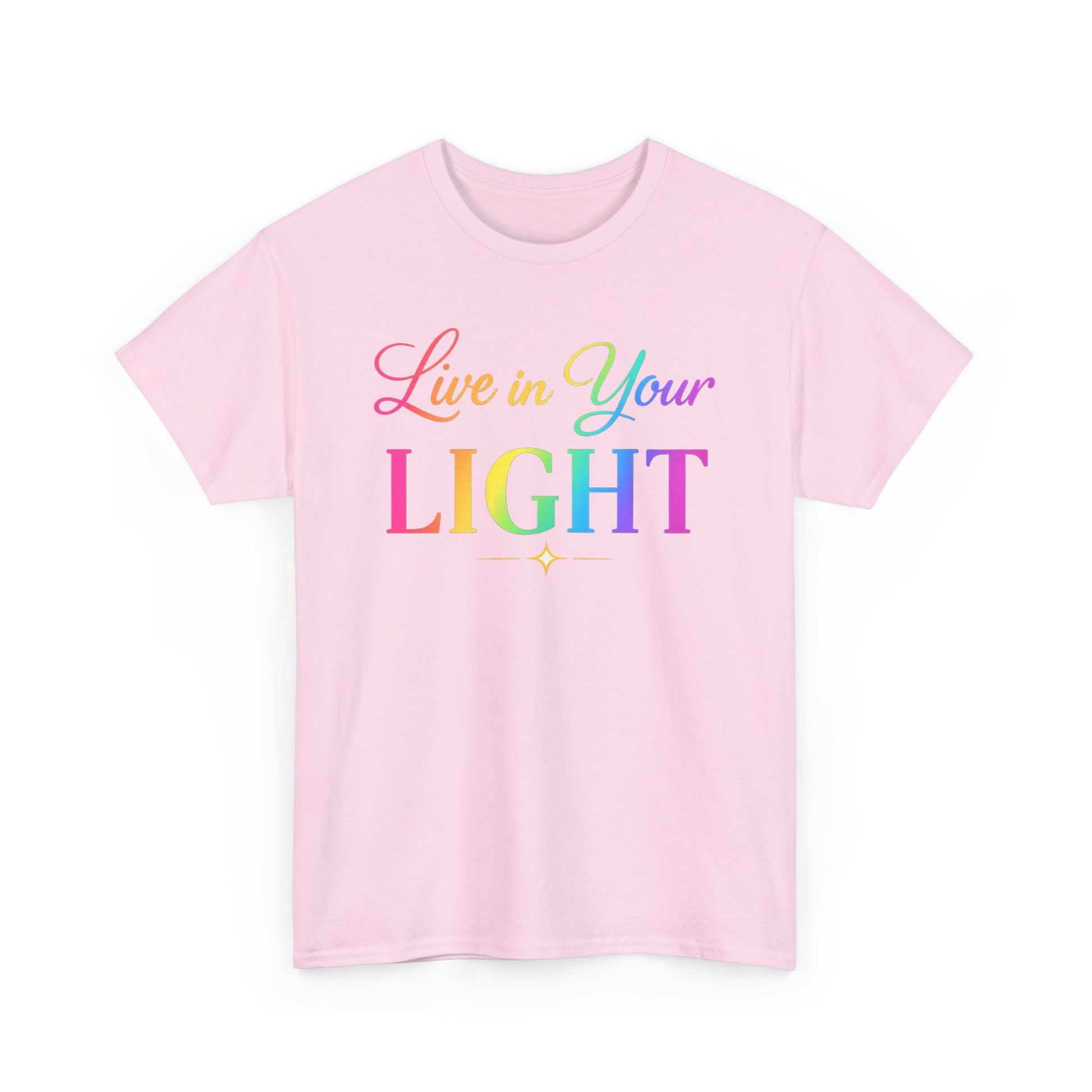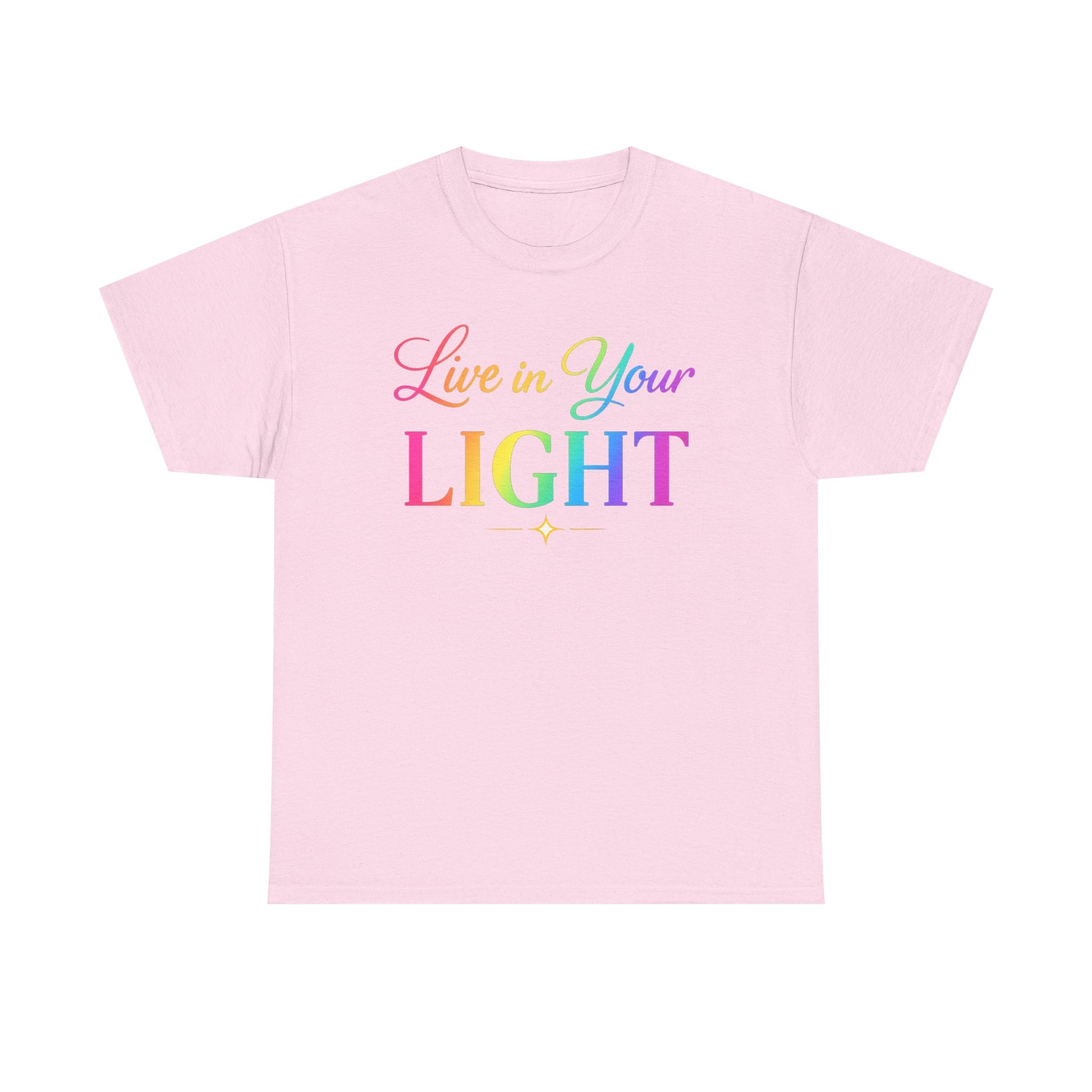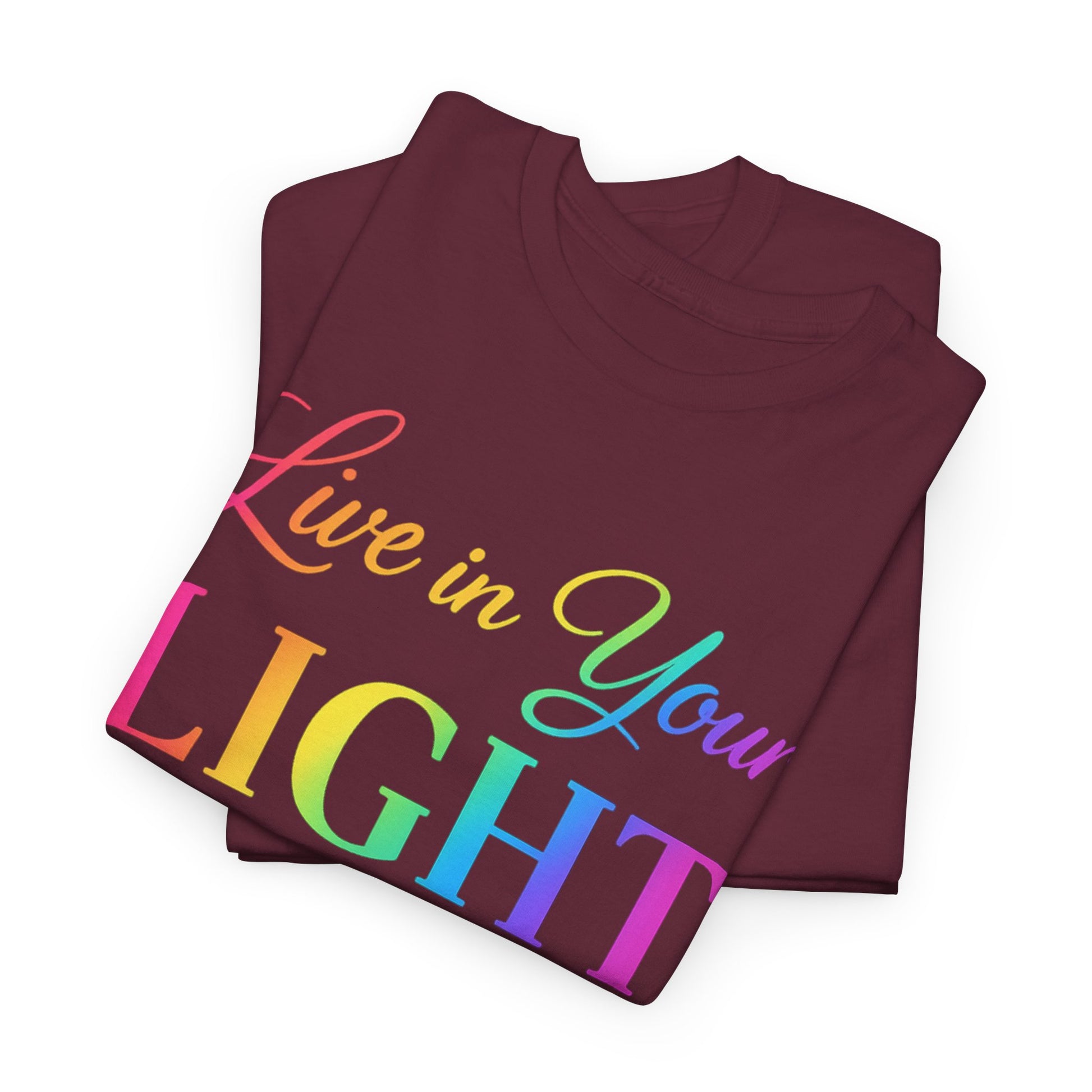 Live in Your Light Rainbow T‑Shirt — Inspirational Positive Message Tee